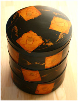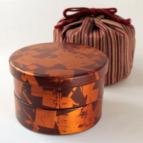切り箔丸めんぱ二段重箱(朱溜)