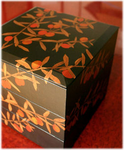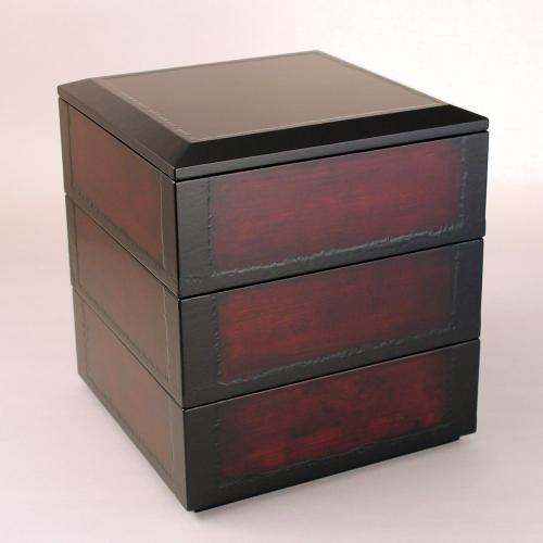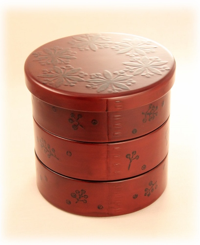 南天めんぱ三段重箱(朱溜)