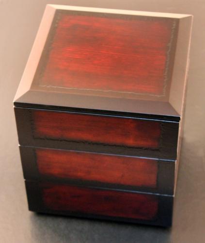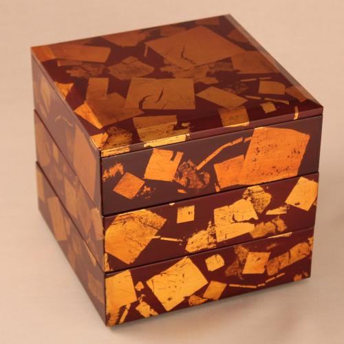 2014年 / 宮崎佐和子作切り箔三段重箱(朱溜)
