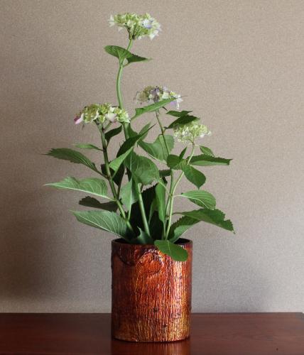 2016年 / 松本和明作マダ樹皮 花器(銀箔溜)