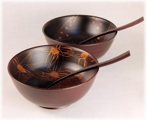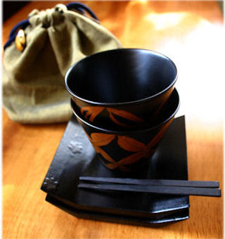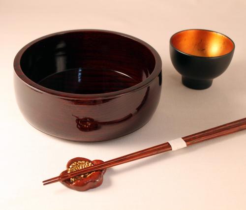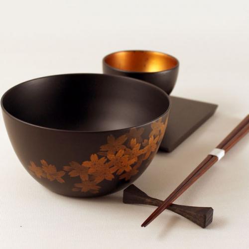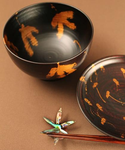 2017年 / 松本和明・宮崎佐和子作南部椀(黒溜)とウルシの木箸置セット