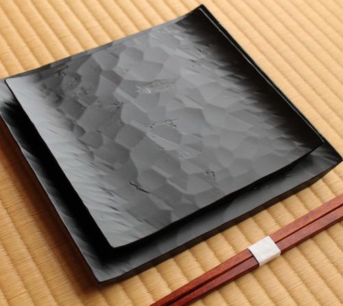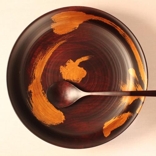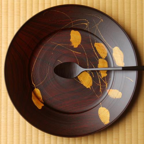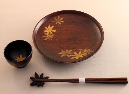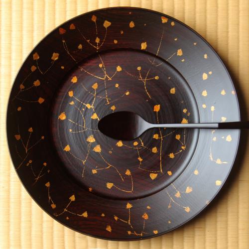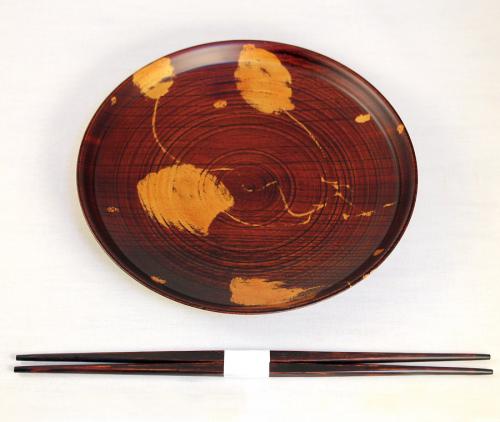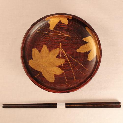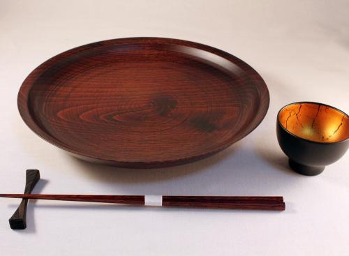 2016年 / 松本和明・宮崎佐和子作欅(けやき)(銀彩) 皿と吉野杉利休形すりうるし箸セット