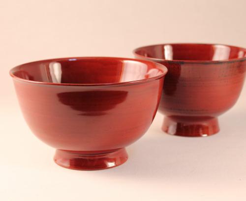 2005年 / 松本和明作茜色の飯椀 & 汁椀セット