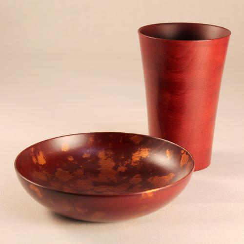 2016年 / 宮崎佐和子作ビールカップ & 欅(けやき) 取り皿(朱溜銀彩)セット