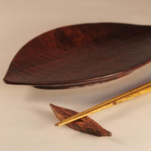朴(ほお)の木の葉皿 & 金箔手削り箸・箸置き3点セット