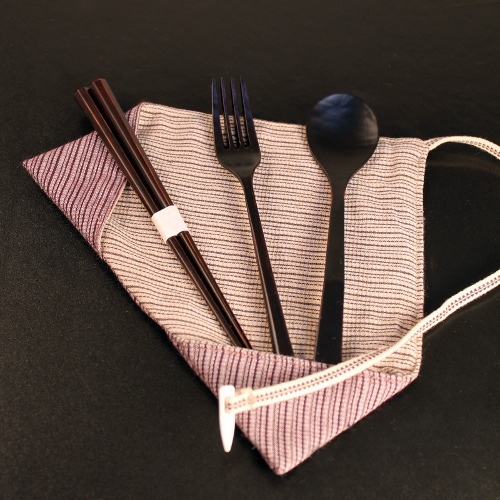 2016年 / 松本和明・宮崎佐和子作小皿(銀彩)と真竹すりうるし箸セット