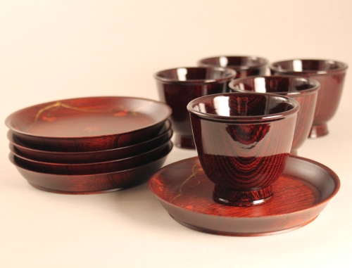 2016年 / 松本和明・宮崎佐和子作金箔ぐいのみとウルシノキ皿晩酌セット