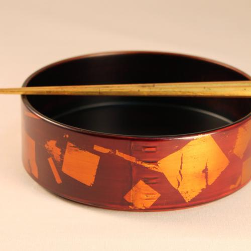 切り箔(朱溜)丸めんぱと金箔手削り箸セット