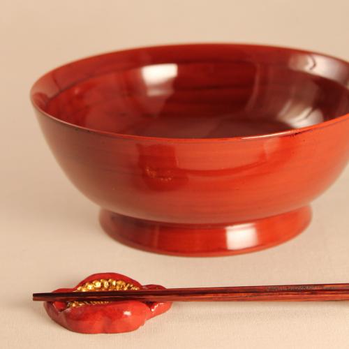 2013年 / 宮崎佐和子作中深鉢「椿」と金箔八角箸セット